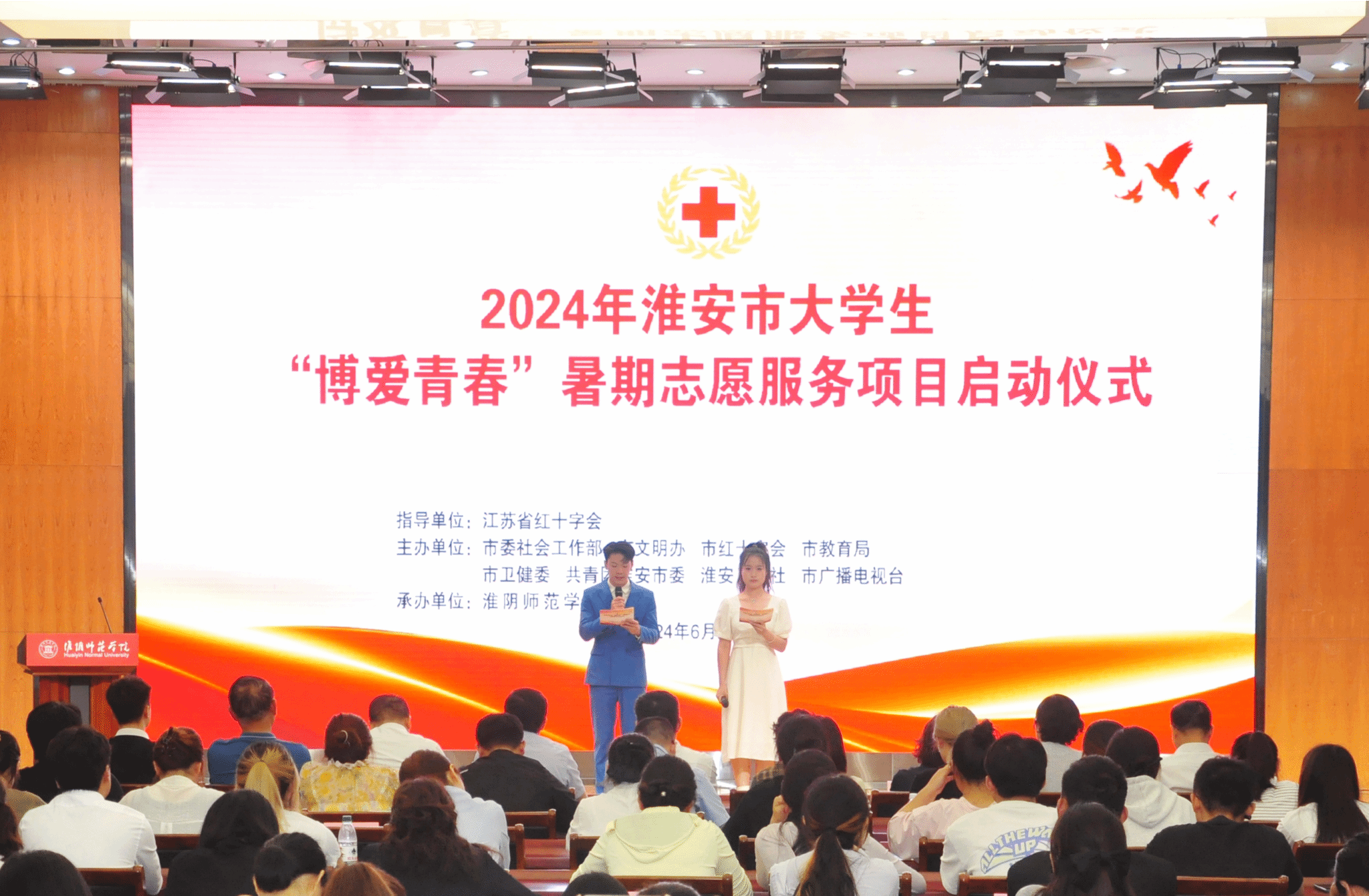 淮师新闻网6月24日电(记者 陈中驭)6月21日下午,2024年淮安市大学生红十字志愿者“博爱青春”暑期志愿服务项目启动仪式在必赢71886网址登录长江路校区图书馆多功能厅举行。省红十字会党组成员、副会长李培森,省红十字会组织宣传部部长丁玉琴,市红十字会党组书记、常务副会长张柏及市委社会工作部、市文明办等8家主办单位相关同志参加活动。淮师副校长闫超栋出席活动并致辞。