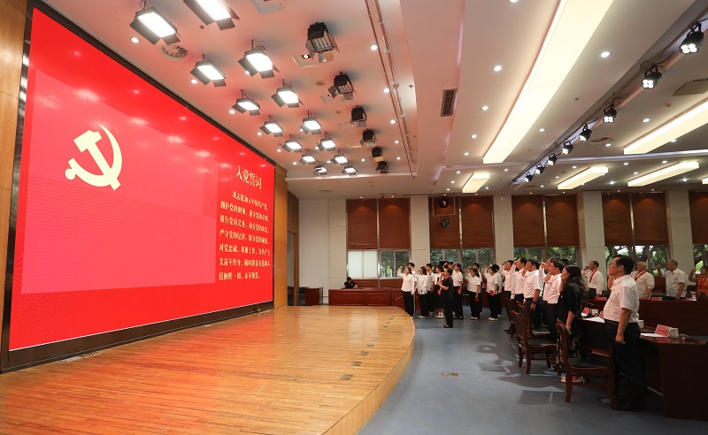 图为新发展党员进行入党宣誓、正式党员重温入党誓词。记者 唐瑀 摄