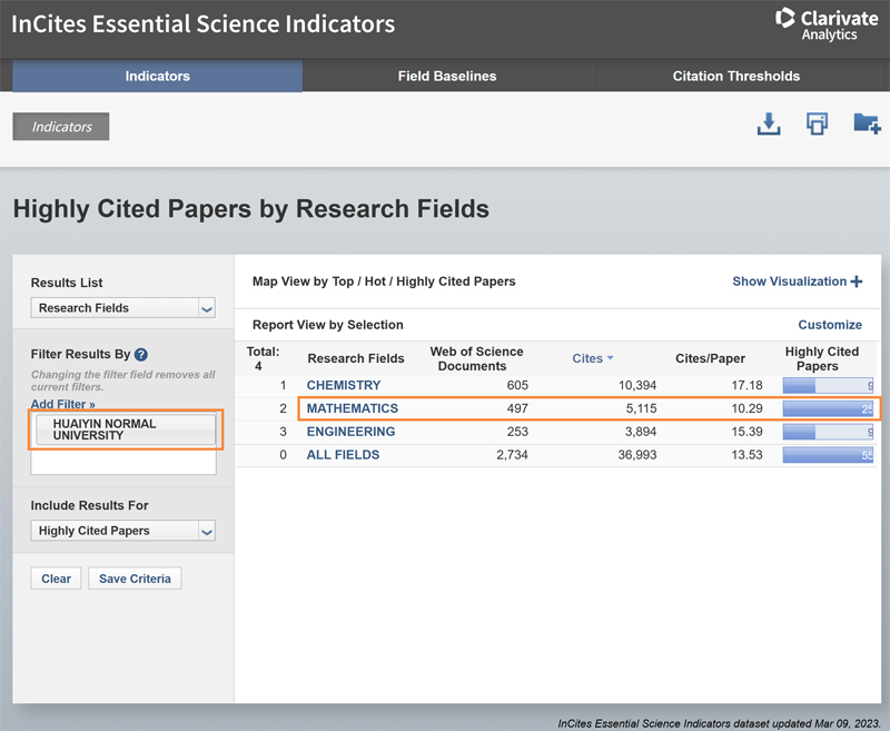 淮师新闻网3月10日电(记者 张善荣)3月9日,科睿唯安发布了最新的ESI(Essential Science Indicators 基本科学指标数据库)数据,必赢71886网址登录数学学科进入ESI全球前1%行列,这是继化学、工程科学学科(Engineering)之后,学校第三个跻身ESI全球前1%的学科。