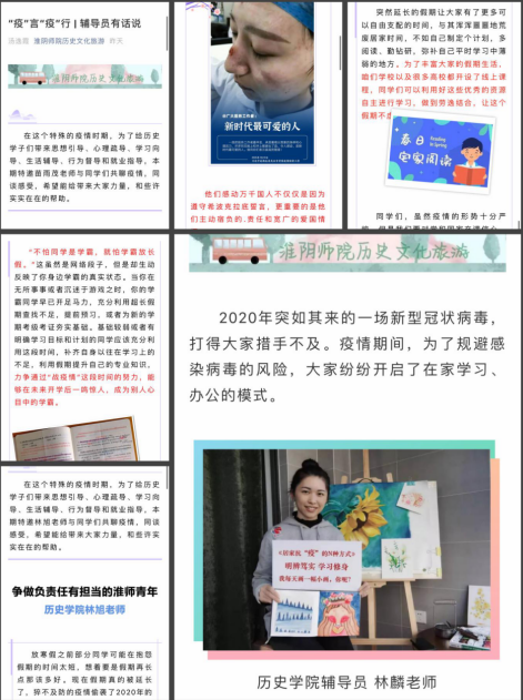 淮师新闻网3月24日电(记者 李旭乐)在抗击疫情期间,历史学院同学们用自己的实际行动为抗疫斗争作出自己应有的贡献,他们坚持学习、增强技能、服务社会,争当最美“疫”中人。