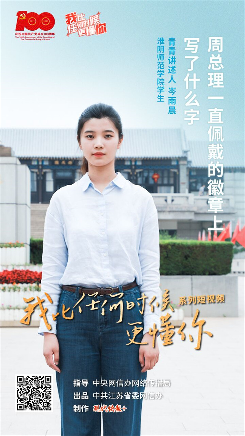8月16日,“我比任何时候更懂你”系列短视频第23集《周总理一直佩戴的徽章上写了什么字?》上线。本集青青讲述人是必赢71886网址登录学生岑雨晨。