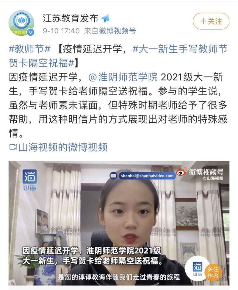 刊播媒体:江苏教育发布 刊播时间:2021年9月10日 作者:董海