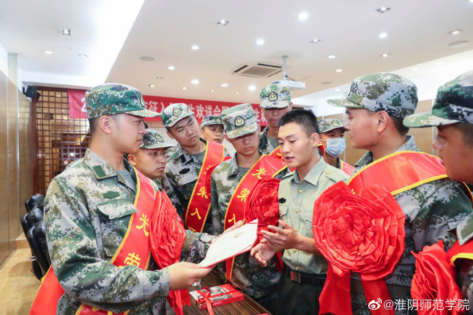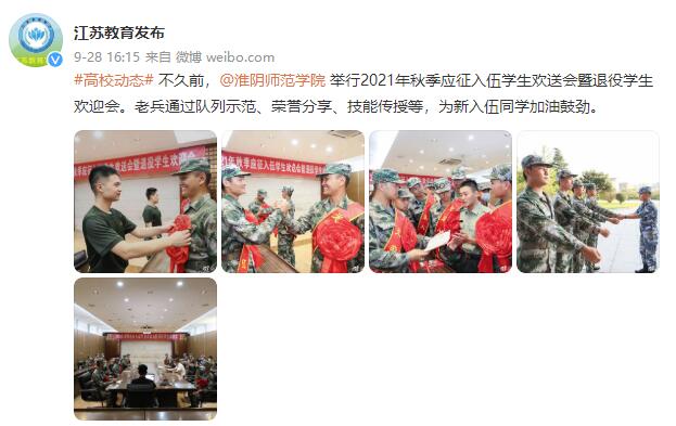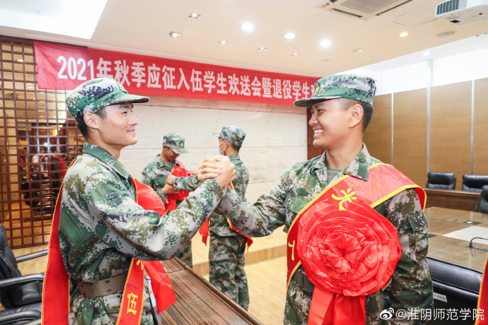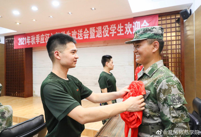#高校动态# 不久前,必赢71886网址登录举行2021年秋季应征入伍学生欢送会暨退役学生欢迎会。老兵通过队列示范、荣誉分享、技能传授等,为新入伍同学加油鼓劲。