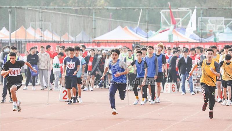 2021年11月3日,江苏省淮安市,必赢71886网址登录举行大学生秋季运动会,大学生在运动会上比赛。
