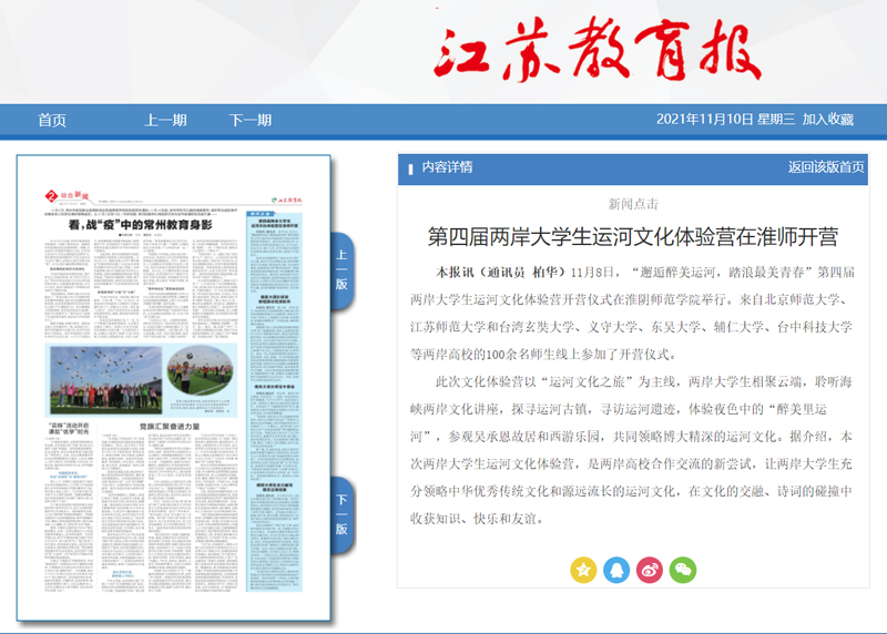 刊播媒体:江苏教育报 刊播时间:2021年11月10日 作者:柏华