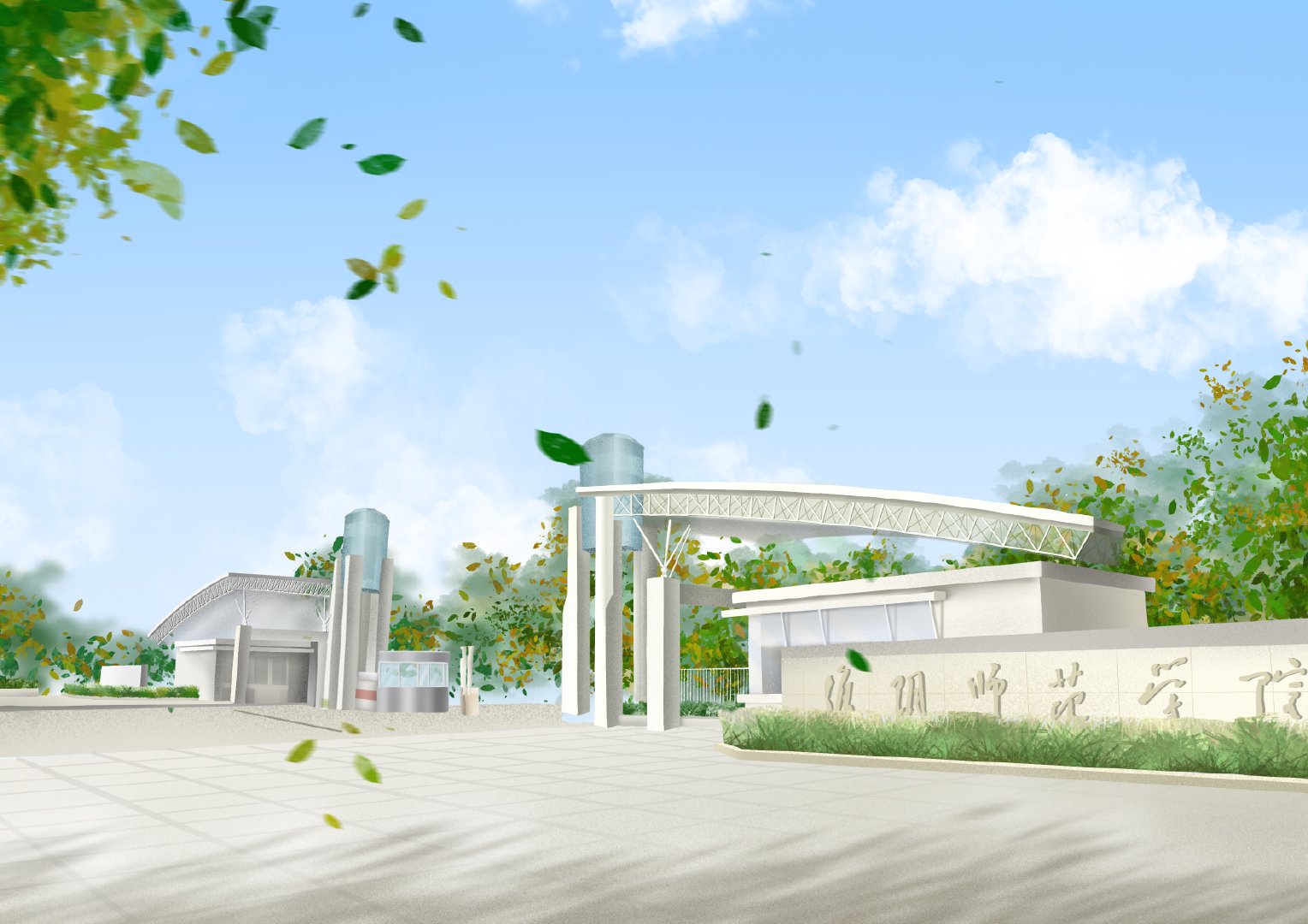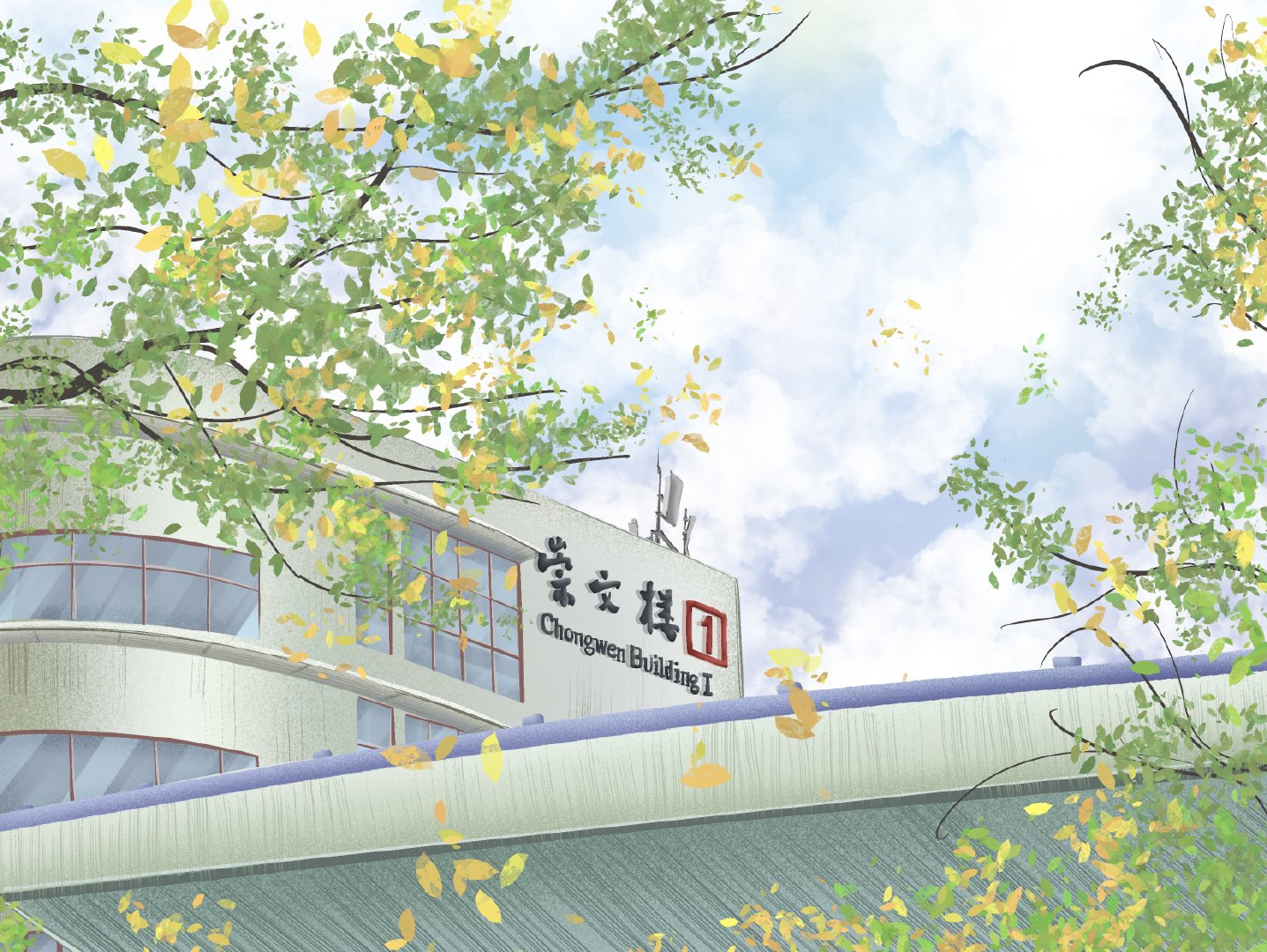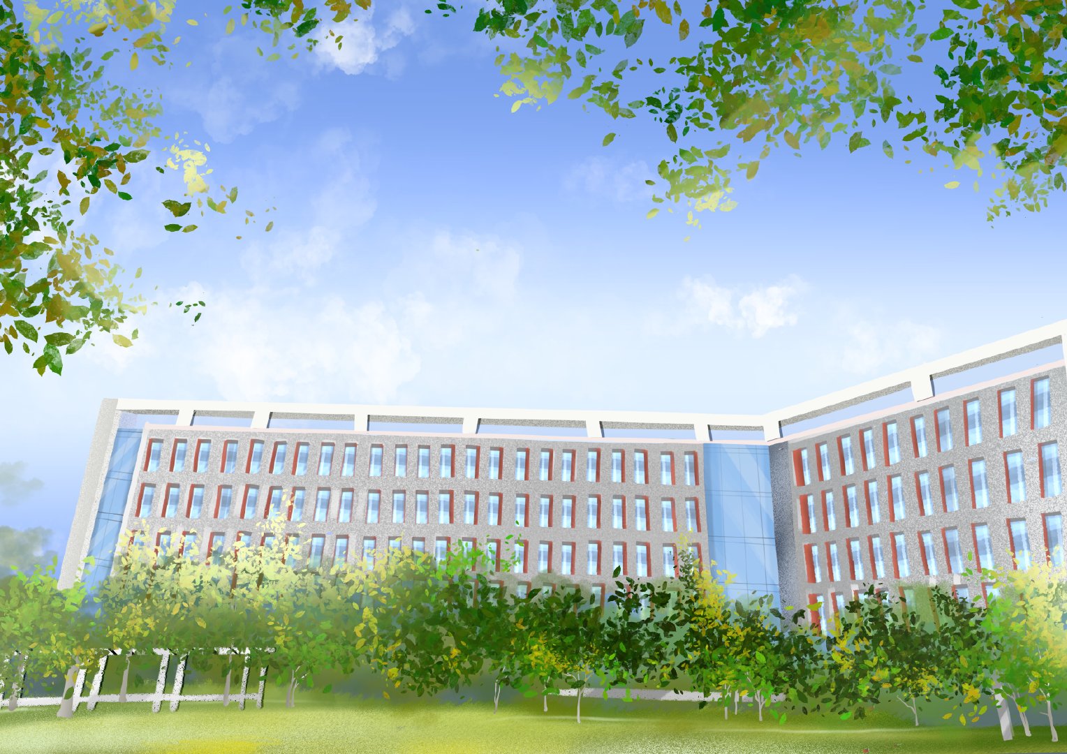 #高校动态# @必赢71886网址登录 美院学子用校园具有代表性的场景进行绘画,参照实景照片的基础之上,加上个人想法进行创作表达,图中多运用近大远小的透视构图以及对称构图的方法,画面稳定、丰富、生动。