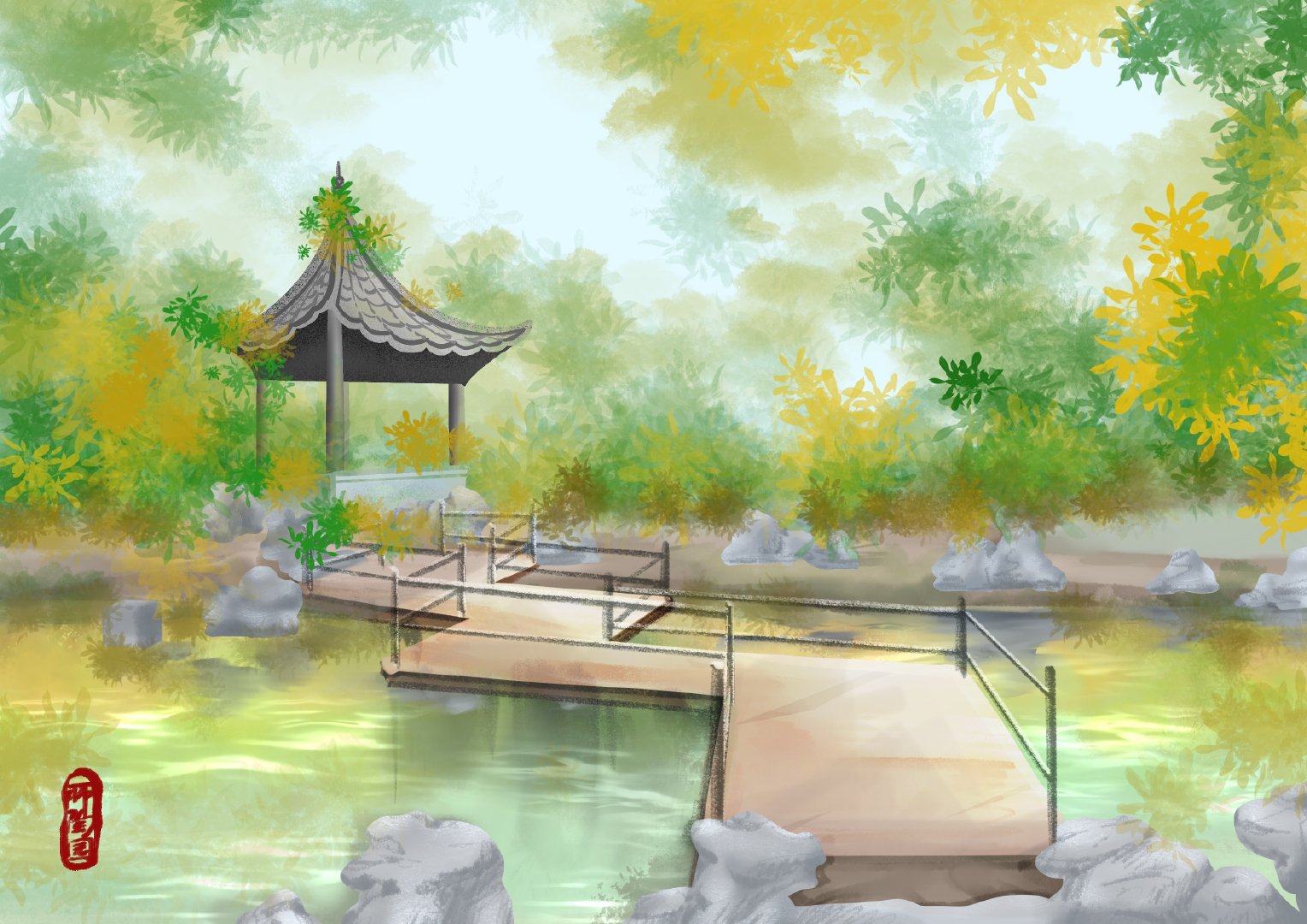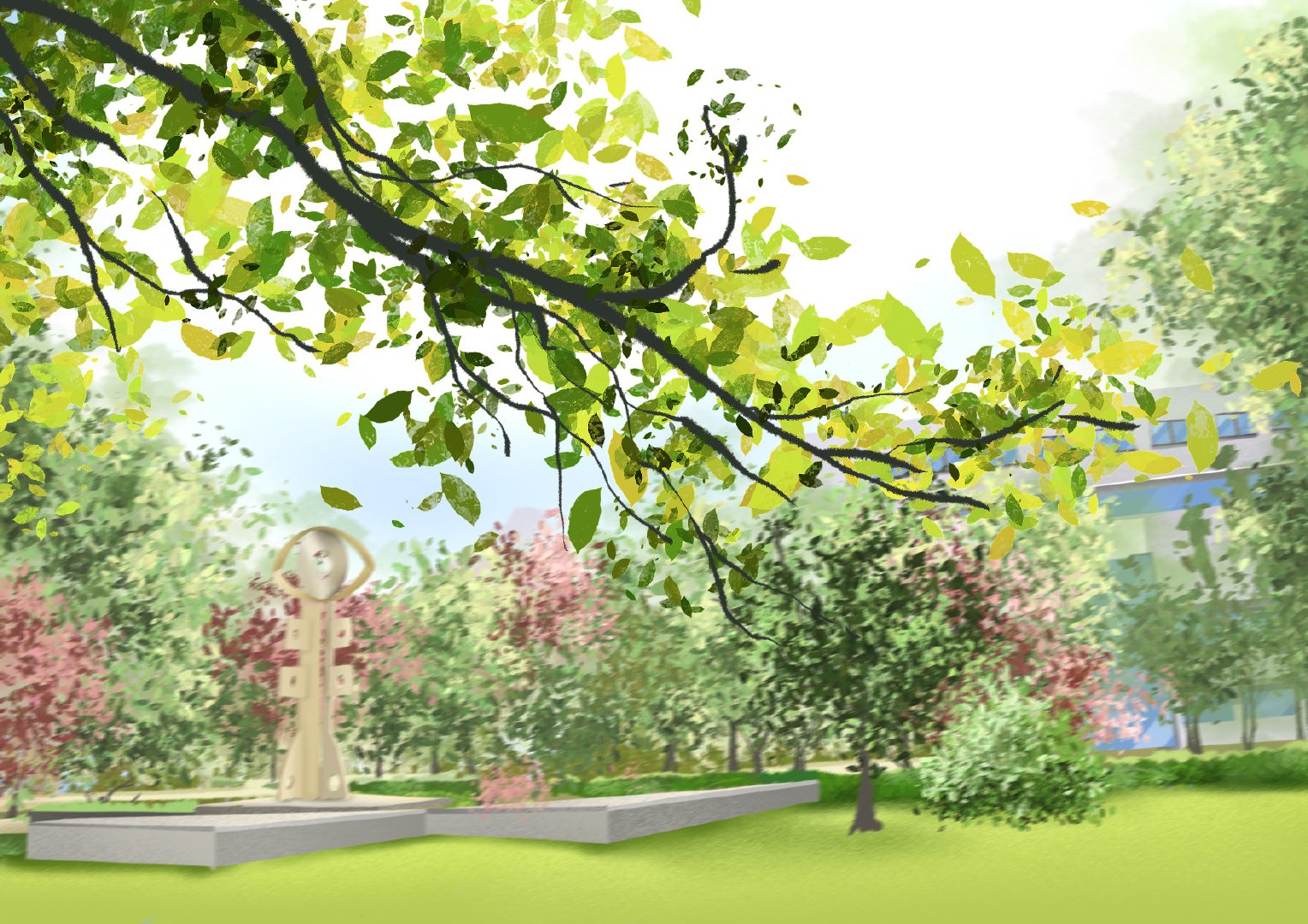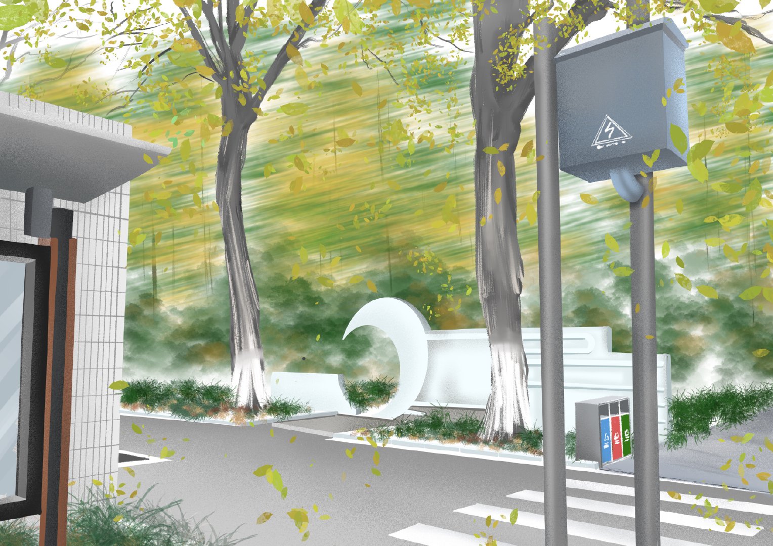 #高校动态# @必赢71886网址登录 美院学子用校园具有代表性的场景进行绘画,参照实景照片的基础之上,加上个人想法进行创作表达,图中多运用近大远小的透视构图以及对称构图的方法,画面稳定、丰富、生动。