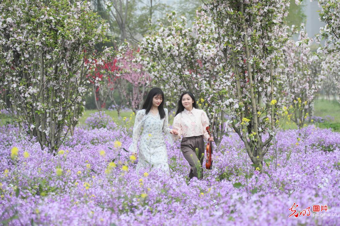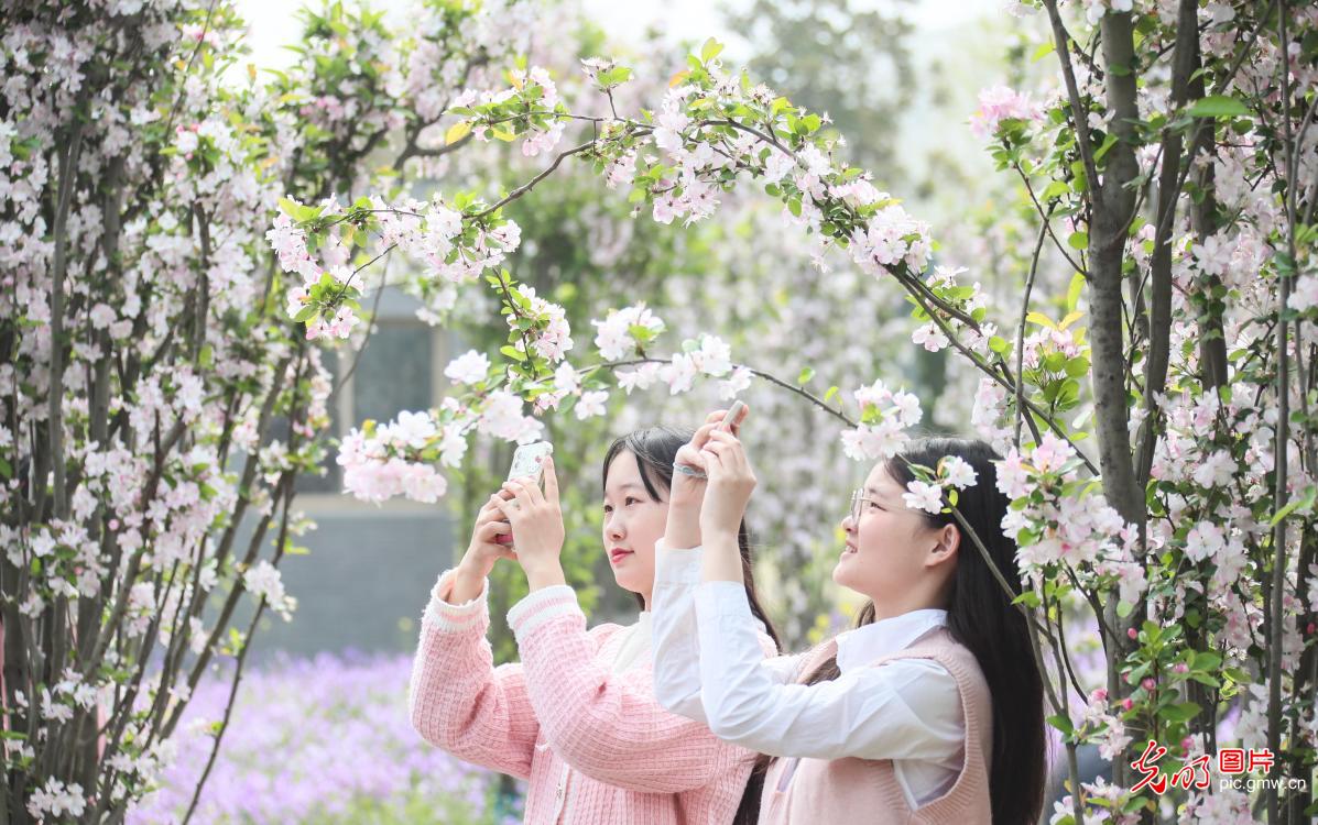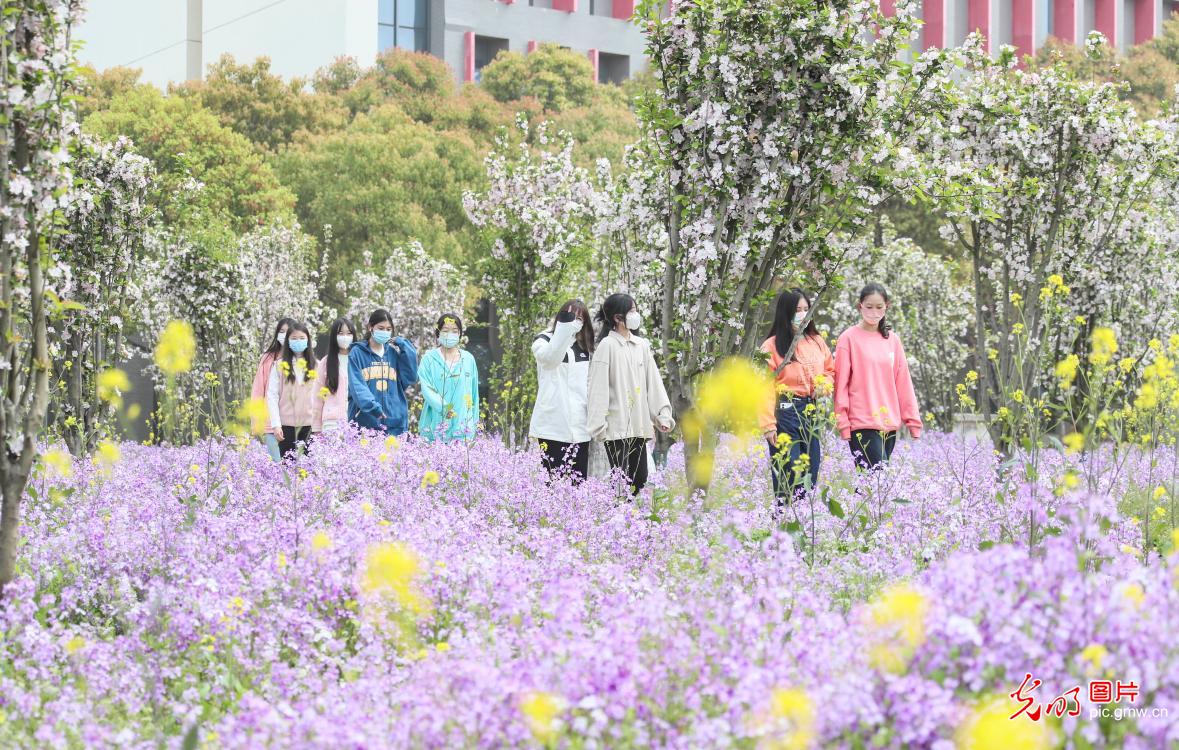 2022年4月7日,江苏省淮安市必赢71886网址登录海棠花开正艳,学生们在海棠树林中漫步赏花,感受浓浓的春意。