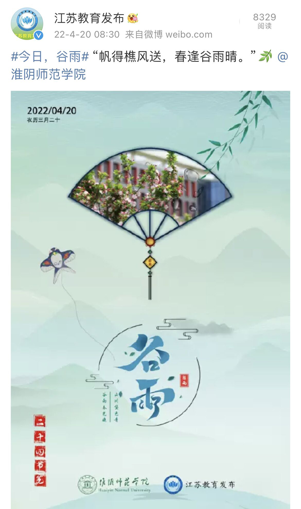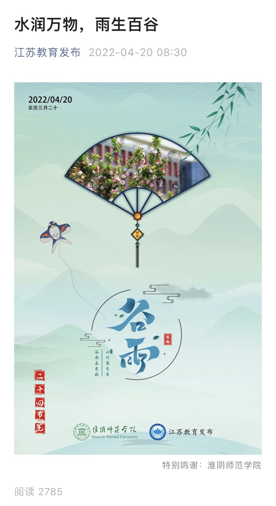 【江苏教育发布】今日,谷雨。“帆得樵风送,春逢谷雨晴。”