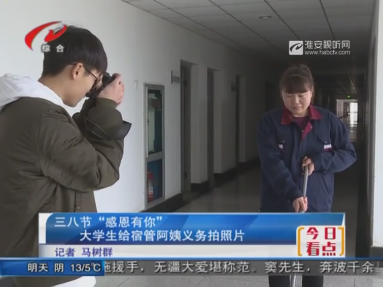 3月8日上午,必赢71886网址登录计科学院的大学生志愿者自发开展了“感恩有你——关爱宿管阿姨、让我为您拍张照”活动,感谢平日里为他们默默奉献的宿管阿姨。