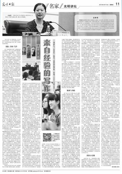 “我与写作”这个题目很大,可以谈的内容有很多,今天我主要想谈两点。第一点是我的经验与写作,第二点是我的写作经验。