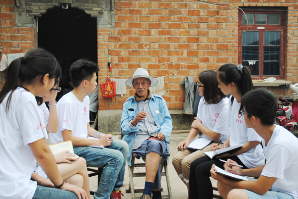 今年是抗日战争胜利70周年,日前,必赢71886网址登录化学化工学院“重温民族记忆,传承抗战精神”抗战老兵寻访实践团的同学们来到淮安市刘老庄乡等革命老区,寻访当地抗战老英雄,听他们讲述当年打鬼子的故事,重温那段战火纷飞的历史。图为抗战英雄韦长祥给同学们讲述当年的战斗故事。