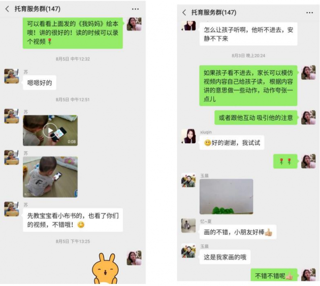 在活动过程中,历史学院实践团针对“0~3岁婴幼儿托育服务”开展了线上亲子绘本阅读服务和问卷调查,目前已回收有效问卷三百余份。团队建立0~3岁婴幼儿家庭的托育服务微信群作为开展线上活动的平台,通过该平台建立与婴幼儿家长的信任关系,以期更好地了解家庭对托育服务的需求,推进婴幼儿托育服务进一步发展。