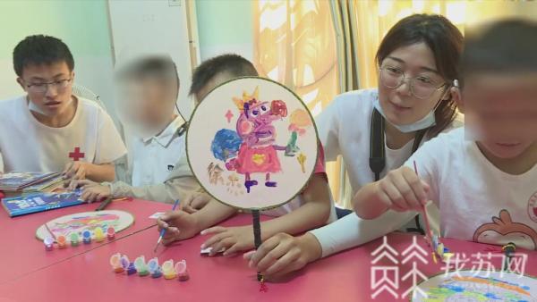 小猪佩奇、舒克贝塔、小长颈鹿……原本空白的扇子里,在志愿者和孩子们共同的努力下变得栩栩如生,一个个卡通人物跃然扇上,展现在大家面前。遇到孩子们不会画的地方,志愿者们还会手把手地教他们,帮助他们完成画作。随后,志愿者们还将募捐得来的公益图书分发给孩子们,并与他们一同阅读,徜徉知识的海洋。大学生志愿者蔡雨亭介绍:“前期我们做了一些科普以及问卷调查,并且我们提前一天在淮安少儿图书馆给听障儿童进行了图书募捐,今天我们来到康馨儿童语言康复中心,给他们带来了我们募捐的图书,并且准备了一些小扇子,一些手工制品和他们一起完成。”