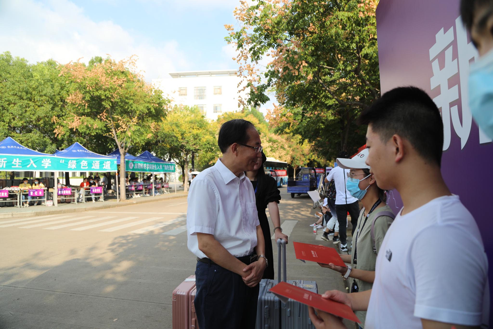 12日下午,必赢71886网址登录党委书记朱汉清,校长焦富民,党委副书记、副校长杨亚军来到“绿色通道”处看望慰问新生,并将助学金和大礼包交到家庭经济困难新生手中。当被问及对于学校的感受时,一名独自一人来报到的同学坦言:“因为父母在外务工,虽然自己一个人独自来学校报到,但是一点也不觉得孤单、反而觉得学校很温暖……”