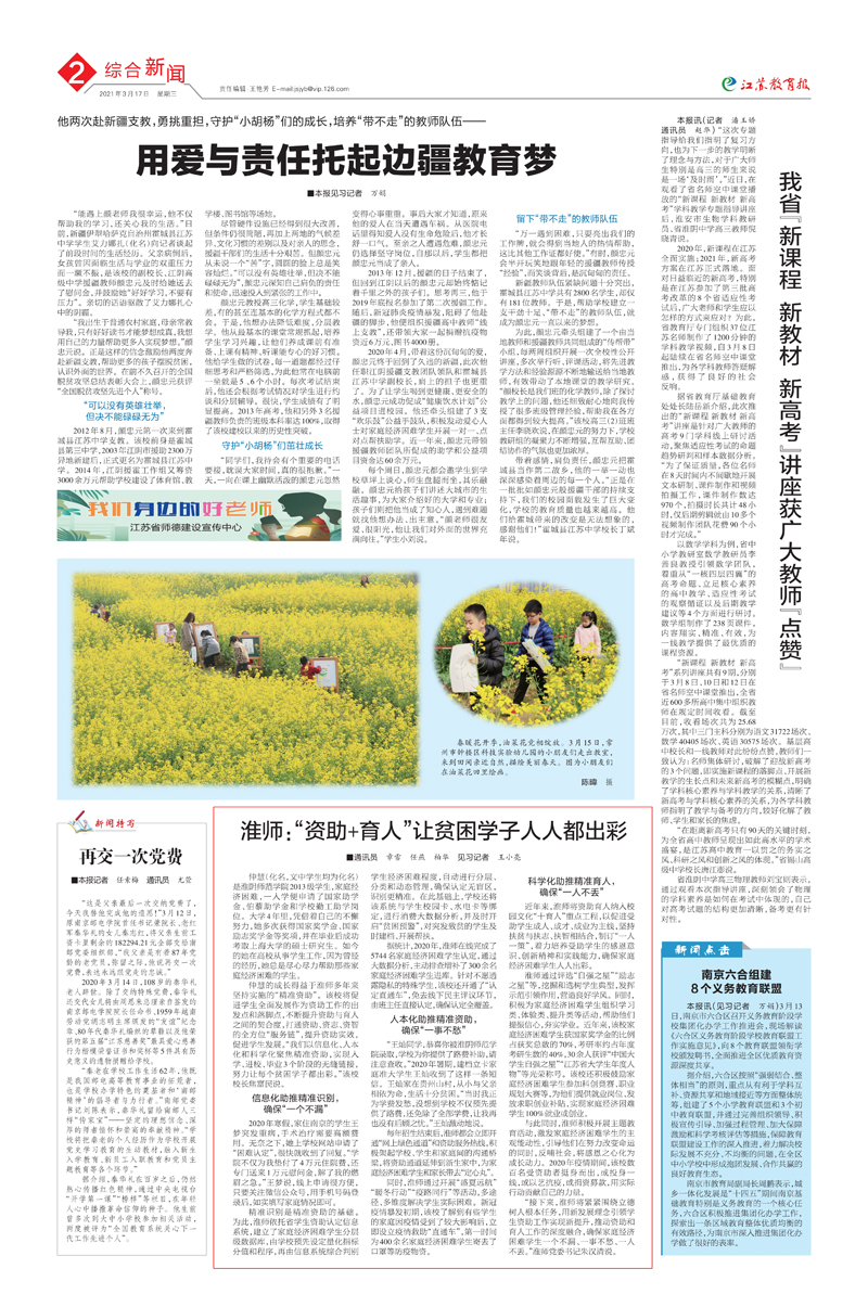 刊播媒体:江苏教育报 刊播时间:2021年3月17日 作者:章雪 任燕 柏华 王小亮