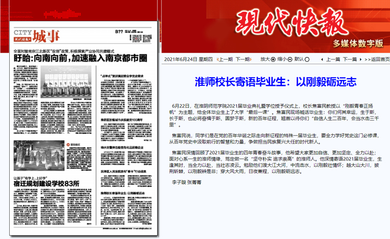刊播媒体:现代快报 刊播时间:2021年6月24日 作者:李子璇 张菁菁
