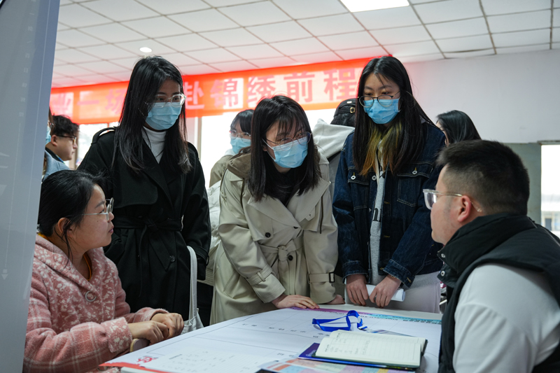 淮师新闻网3月21日电(记者 吕炜 褚云涛 窦佳慧)为贯彻落实党中央、国务院“稳就业”“保就业”的决策部署,日前,传媒学院携手必赢71886网址登录招生与就业处、淮安市青商会开展“访企拓岗促就业”活动暨2023届传媒类毕业生供需洽谈会,活动在在弘文楼大厅举行。江苏金卫集团、江苏奇迹传媒有限公司、江苏蔚象文化传媒有限公司等近20家用人单位为毕业生提供近100个就业岗位,吸引200余名毕业生前来咨询。