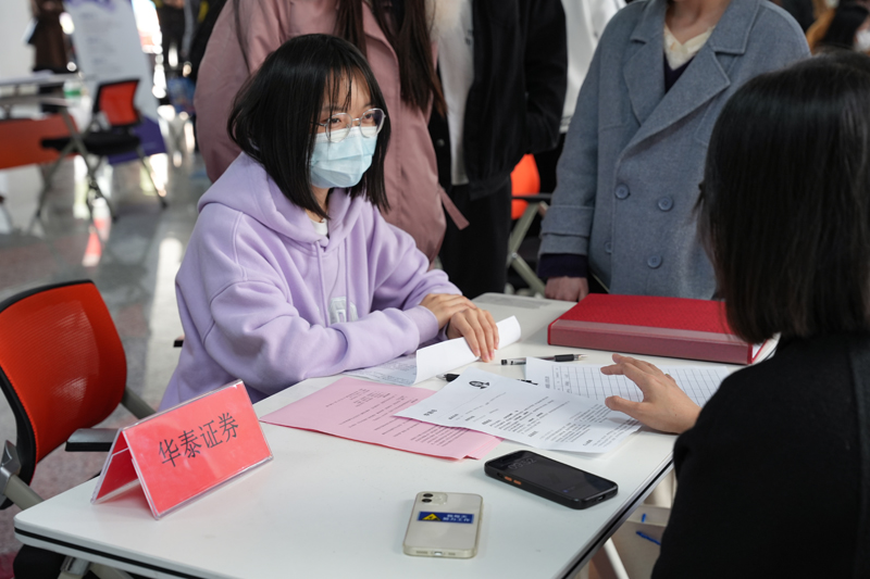 招聘单位通过张贴宣传海报、发放宣传单页、面对面交流等方式就同学们感兴趣的招聘岗位的要求、薪资待遇、个人发展前景等事项与同学们进行了深入全面的沟通。江苏金卫集团的招聘负责人表示,这次主要是招聘电商运营、视频拍摄、主播等相关人才,欢迎有相关经历的同学。传媒学院毕业生李健翔表示,十分珍惜此次与企业面对面交流的机会,主动与招聘人员沟通,了解到不少心仪且专业对口的岗位,感谢学校和学院提供这次与企业面对面交流的平台。不少大二、大三的学生也来到现场,通过与企业交流沟通,明确自己的职业目标,为自身生涯发展规划奠定良好的基础。